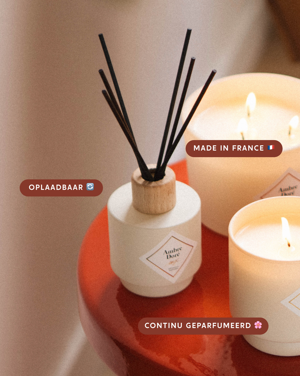 Voor een lichtere geur kunt u enkele stokjes verwijderen. Vul uw mooie flesje opnieuw met onze parfumnavullingen.