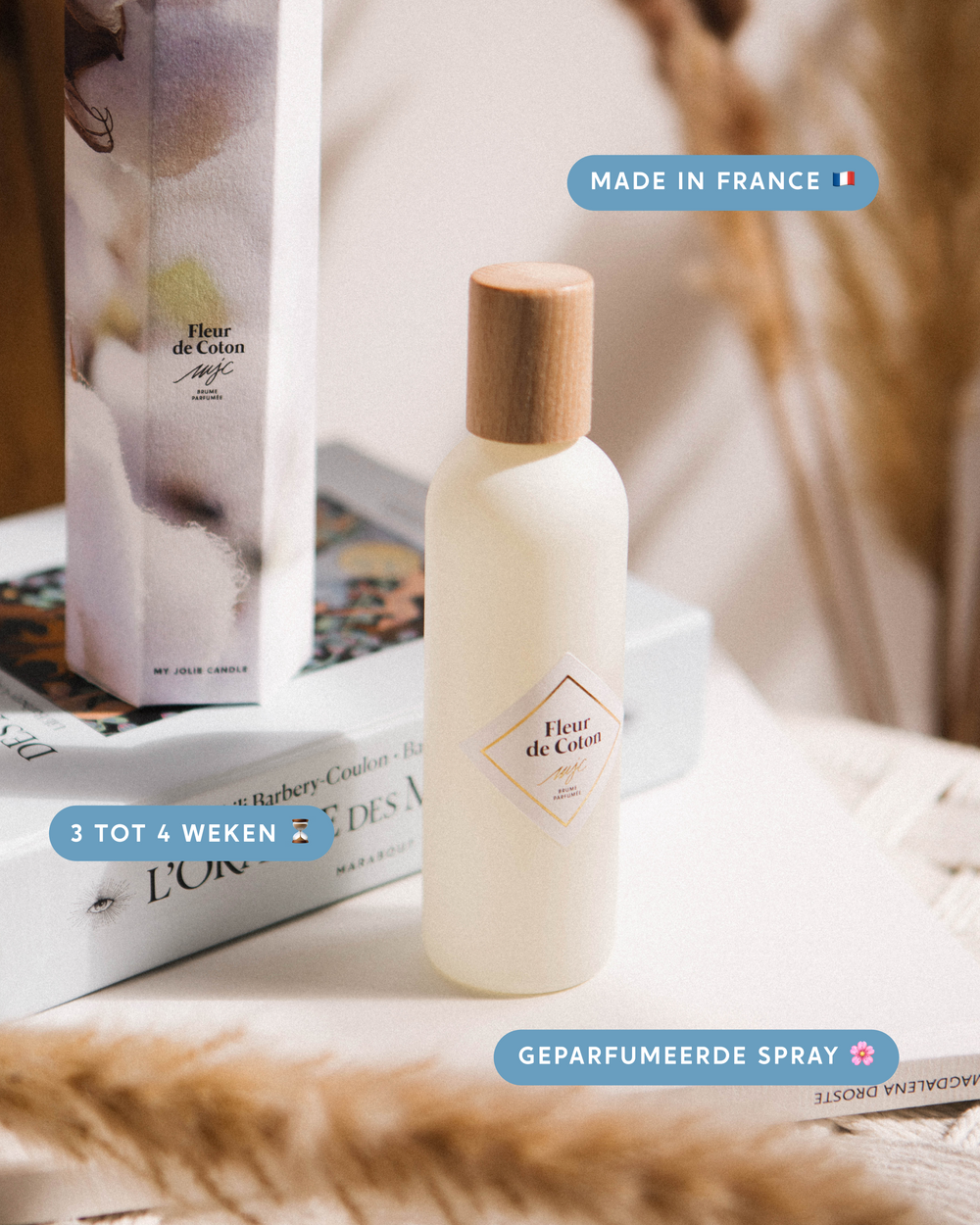 Met één enkele beweging verspreidt onze geparfumeerde spray Fleur de Coton onmiddellijk een langdurige geur. Waar alles luxe, rust en plezier is... Achter deze rustgevende geur schuilt een poederachtig akkoord met bloemige noten die je uitnodigen om het wat rustiger aan te doen. Geniet tot wel 4 weken lang van een heerlijke geur.
