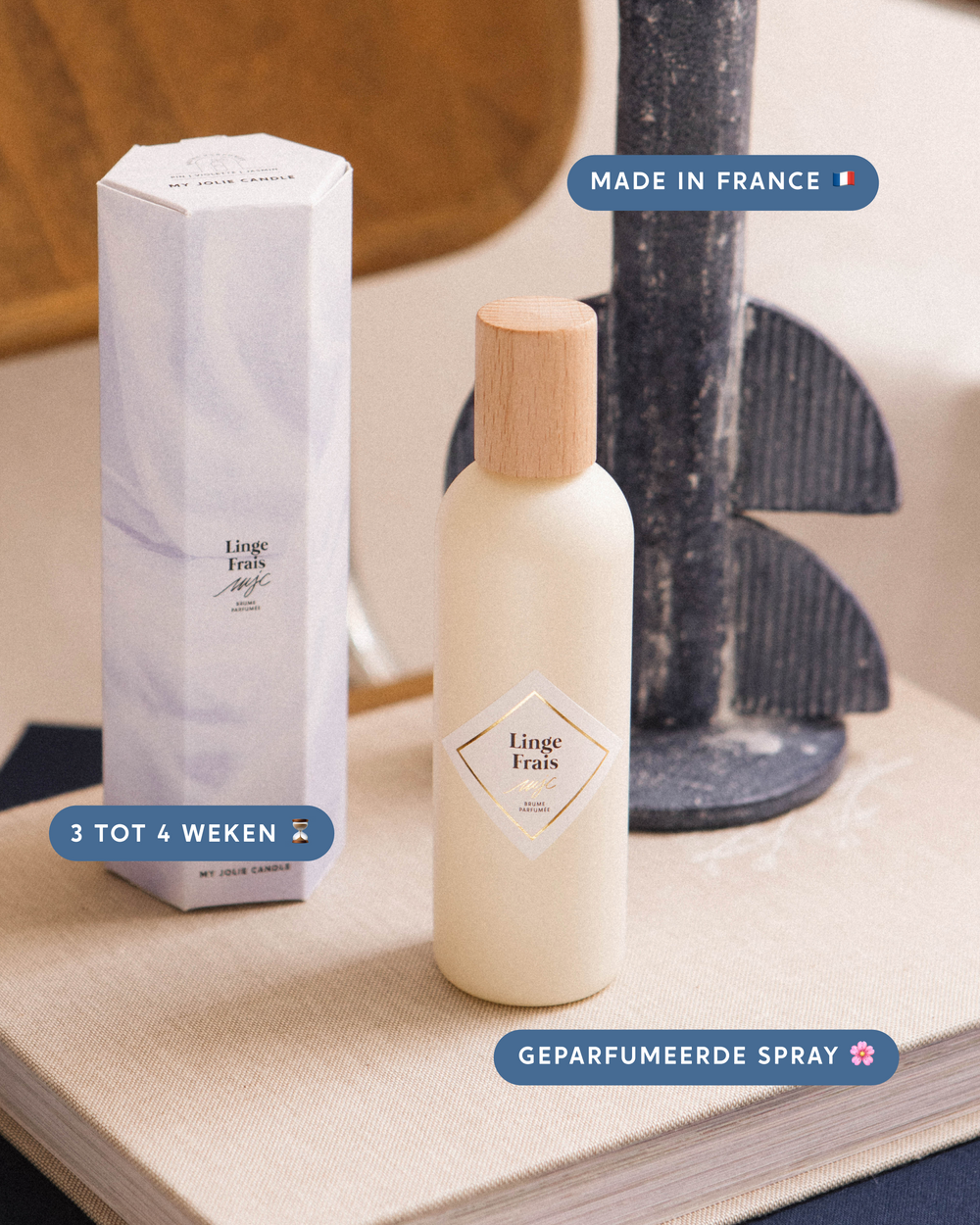 Met één enkele beweging verspreidt onze geparfumeerde spray Linge Frais onmiddellijk een langdurige geur. Beeld je in dat pas gewassen lakens in de zon liggen te drogen, omringd door bloemen en dennenbomen. Fris, bloemig, delicaat: een heel zuiver akkoord dat onaangename geurtjes op afstand houdt. Geniet tot wel 4 weken lang van een heerlijke geur.
