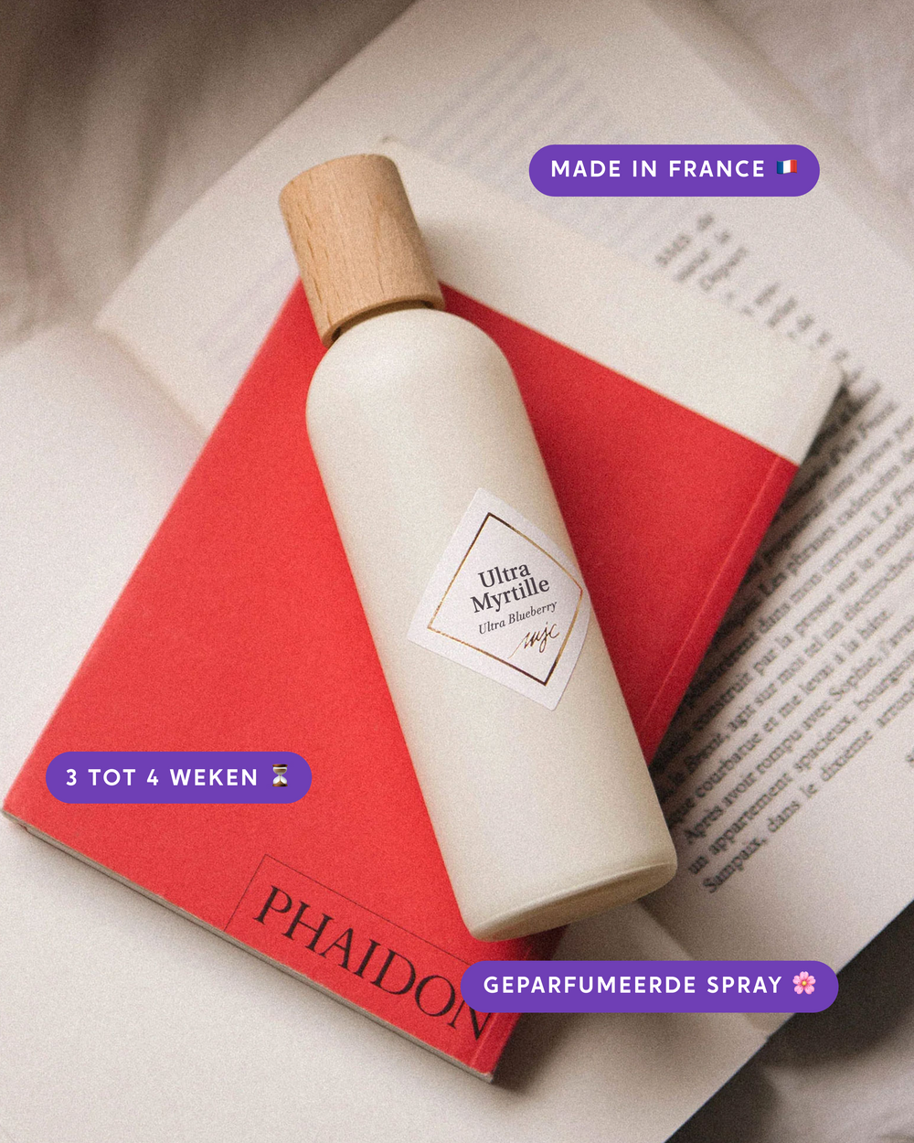 Met één enkele beweging verspreidt onze geparfumeerde spray Ultra Myrtille onmiddellijk een langdurige geur. Een vrolijke en speelse combinatie, als een bosbessen snoepje met een vleugje viooltjes. Een geur om zonder mate van te genieten. Geniet tot wel 4 weken lang van een heerlijke geur.