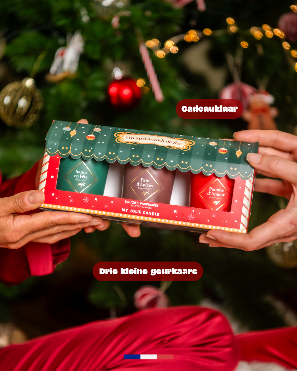 - Geschenkset met 3 kleine kaarsen: Sapin en Fête, Pain d’Épices en Pomme d’Amour