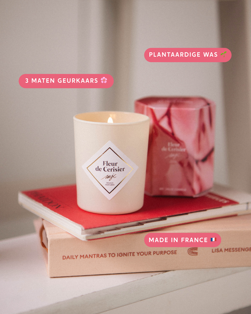 Geurkaarsen zijn ideaal om een gezellige sfeer te creëren. Ze zijn verkrijgbaar in drie maten, voor liefhebbers van kaarsen of om als attent geschenk te geven. Verse bloemen en hun delicate, bloemige en sensuele geur. Hier halen we onze inspiratie uit hanami, de contemplatie van kersenbomen die de terugkeer van mooi weer aankondigt.