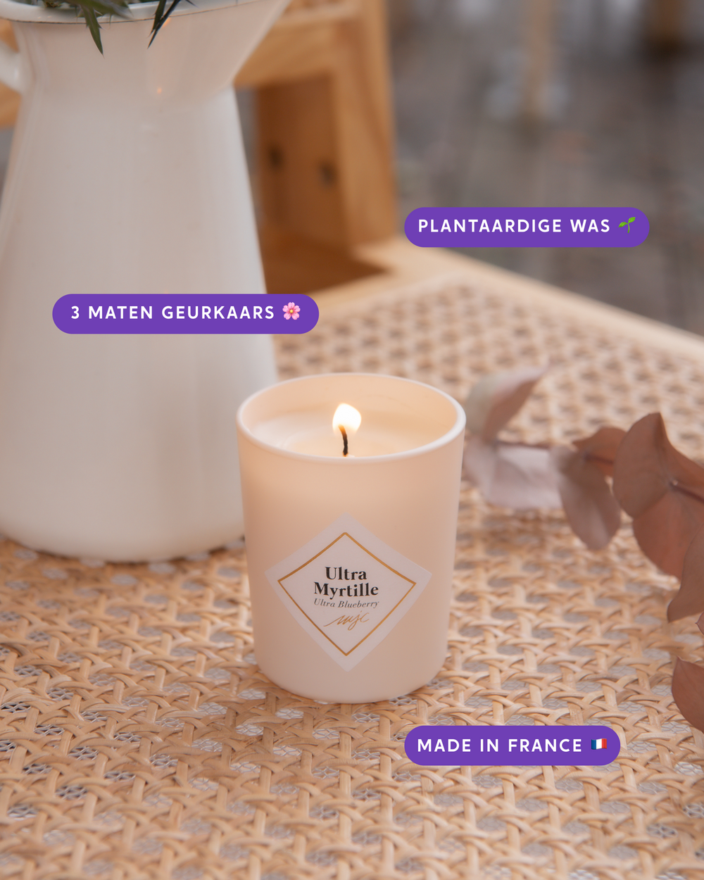 Voor de beste ervaring: doof de kaars zodra de was 1 cm diep is, zo voorkom je schade aan het glas of de ondergrond.