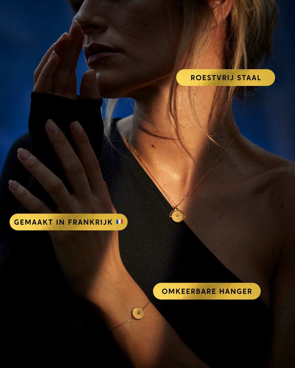 - Armband of halsketting van roestvrij staal, verguld met 18-karaats fijn goud